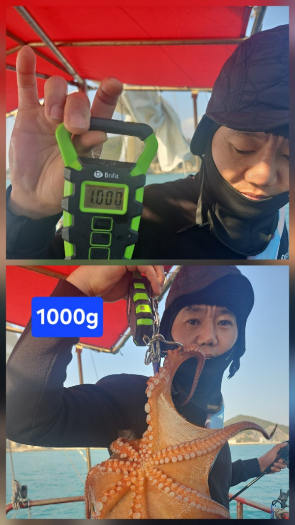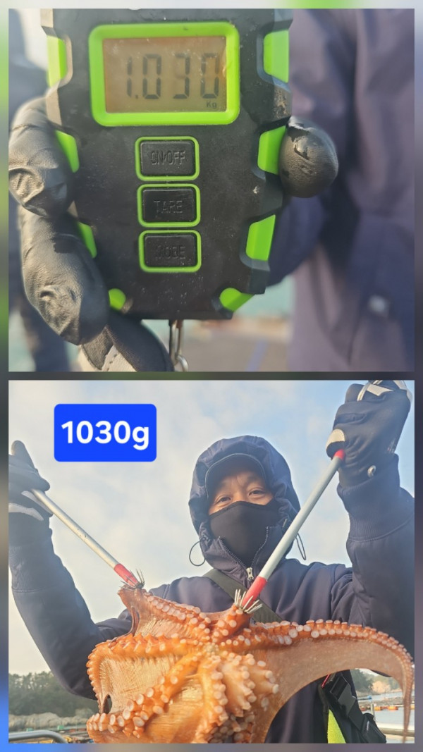 릴링 도중 빠짐이 많아 아쉬움이 컸고, 🐙 kg 이상 문어 9수와 중치급들이 나와 씨알은 좋았지만 전체적으로는 재미가 덜한 낚시였습니다.